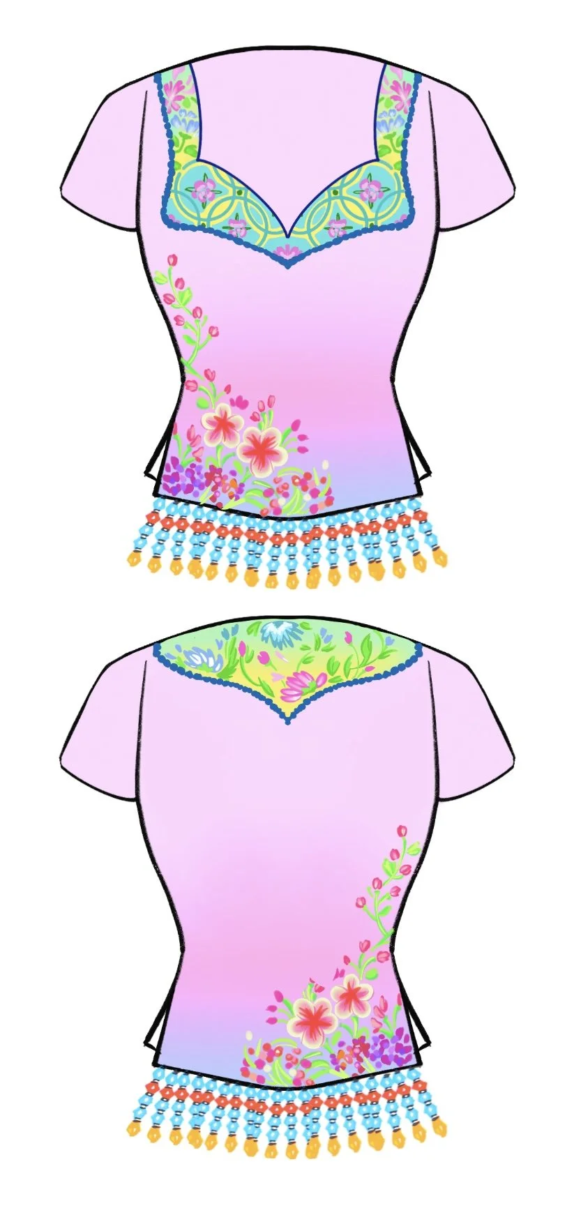 Patterns and Motifs: Incorporating traditional Peranakan motifs such as phoenixes, peonies, and other floral patterns into the T-shirt design.